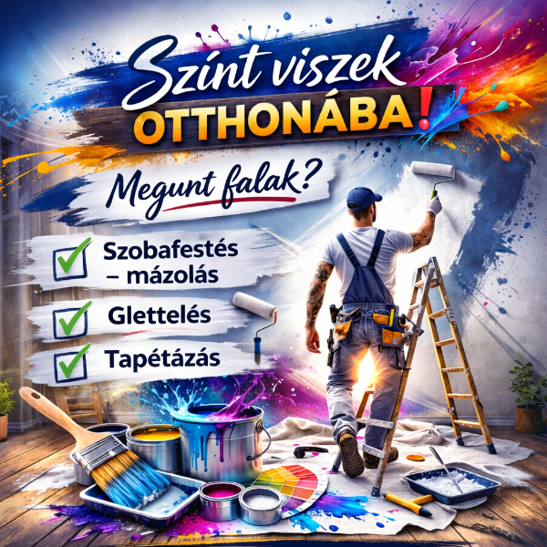 20 éves tapasztalattal vállalok belső és külső festési munkákat, tapétázást kisebb javításoktól a teljes felújításig. Számomra fontos a precíz, tiszta munkavégzés és az, hogy az elkészült munka hosszú távon is esztétikus és tartós legyen. Lakások, családi házak, irodák festését egyaránt vállalom, legyen szó tisztasági festésről, glettelésről, mázolásról vagy régi felületek felújításáról. Megbízhatóan, határidőre dolgozom, a megbeszélteket mindig betartom.